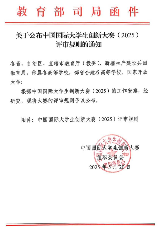 关于公布中国国际大学生创新大赛(2025)评审规则的通知